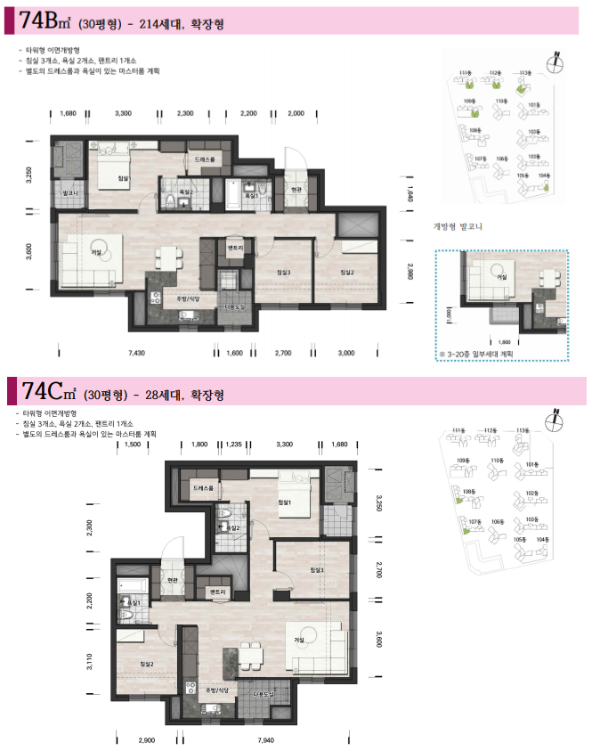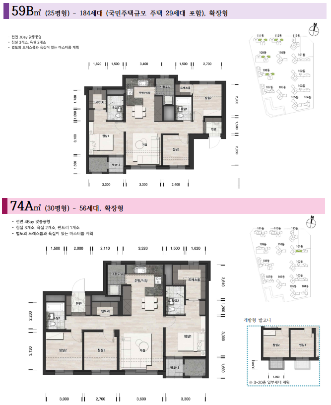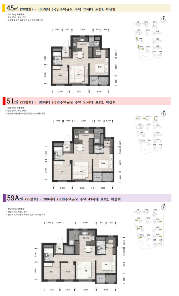 • 전용면적 구성: 45㎡, 51㎡, 59㎡, 74㎡, 일부 79㎡